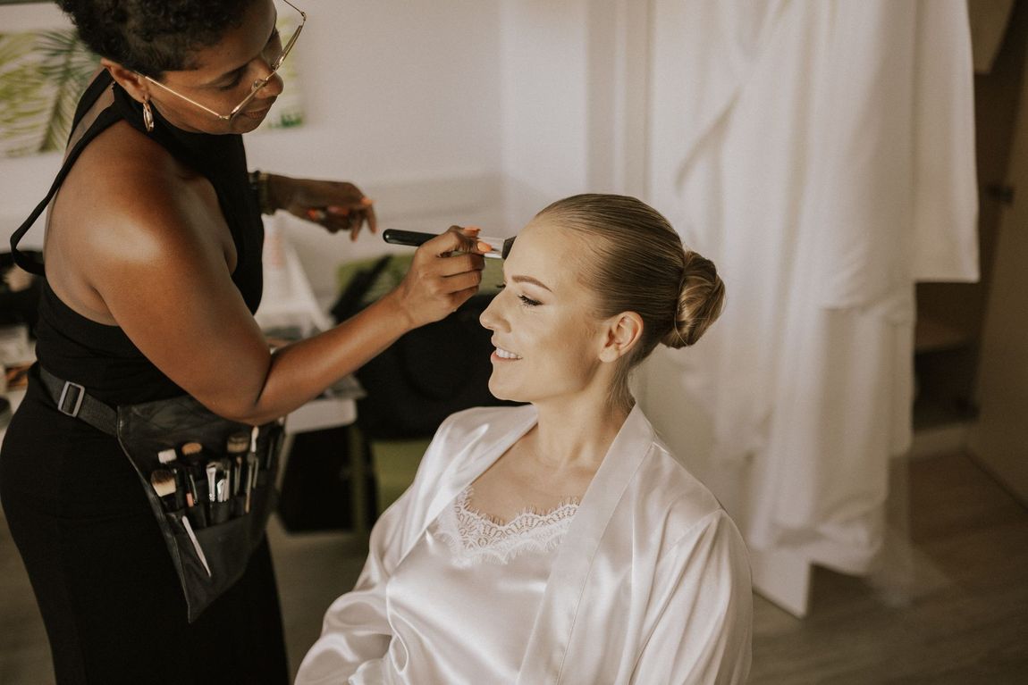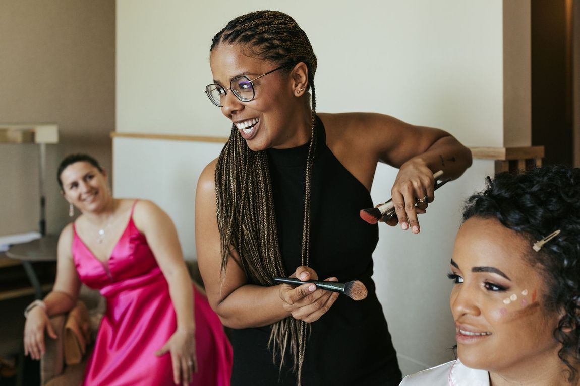 No próprio dia, o papel do maquilhador torna-se ainda mais importante: garantir que a maquilhagem está impecável, adaptada à luz do dia e das fotografias, e que a noiva se sente deslumbrante em cada momento. Existe ainda a possibilidade de um serviço de acompanhamento, antes e durante o casamento, assegurando retoques sempre que necessário e oferecendo tranquilidade para que a noiva apenas se preocupe em viver intensamente o seu grande dia.